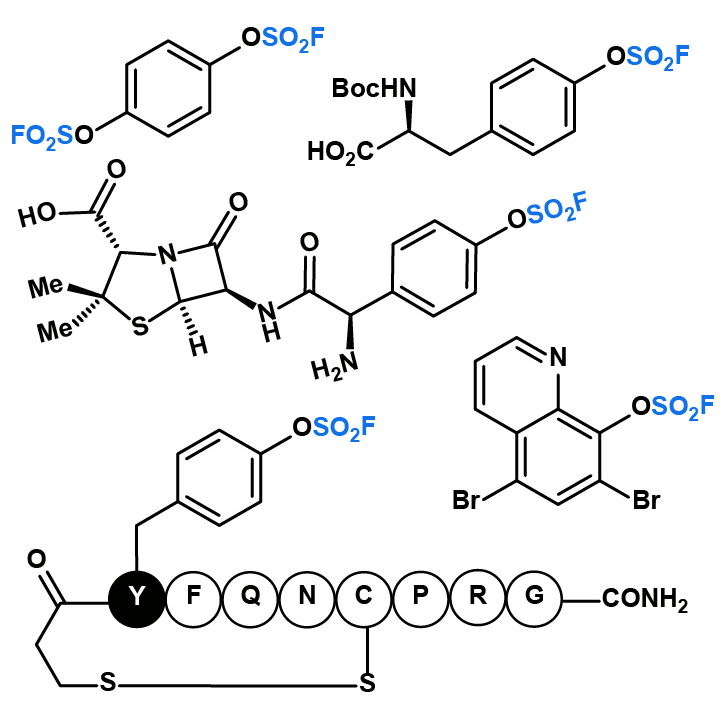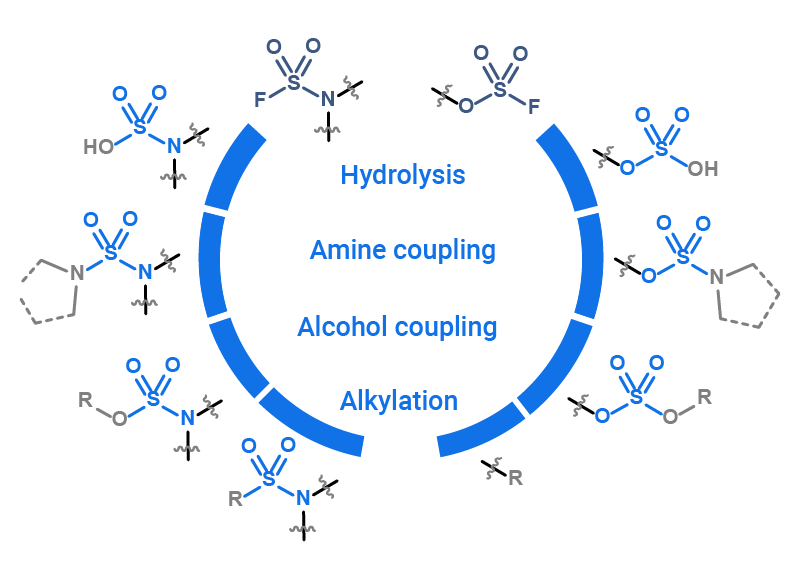 We also offer other services based on our expertise in SuFEx click chemistry. Send us your products or mixtures, and we can install -SOF handles or even deliver fully clicked products.